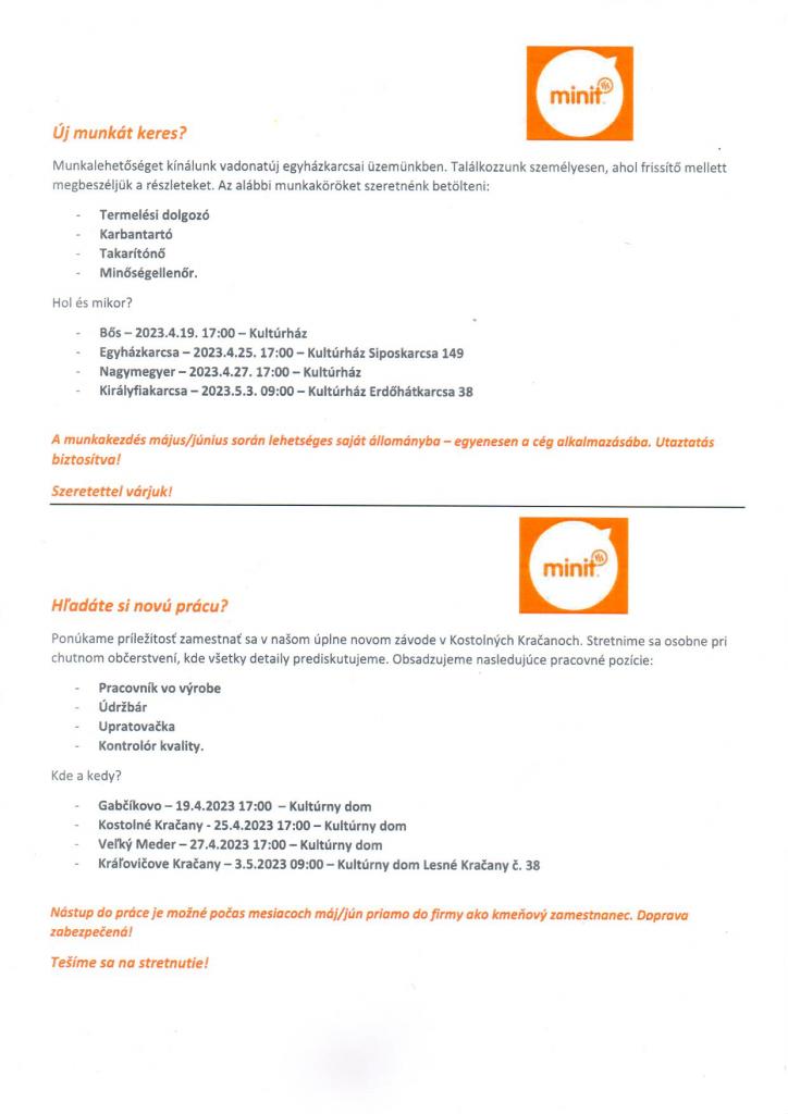 Ponuka práce MINIT SLOVAKIA, spol. s r.o.